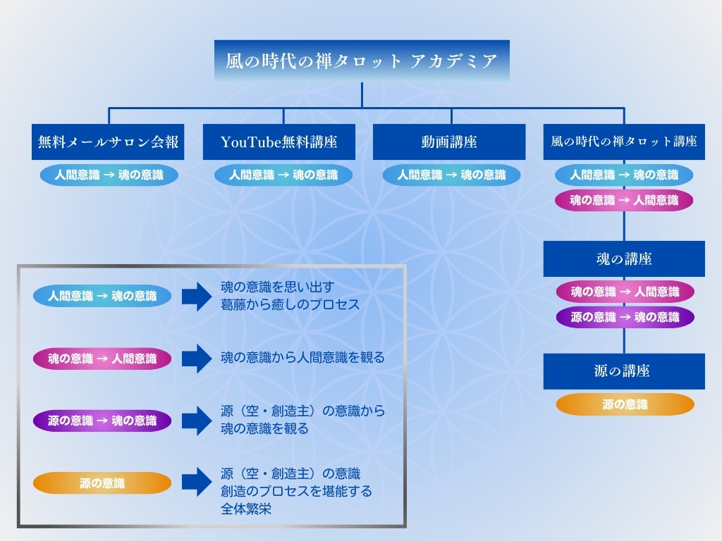※意識の視点の違いは、ウェブサイトトップの「風の時代の禅タロットアカデミア講座概要図」をご覧下さい。